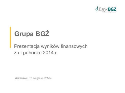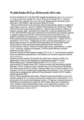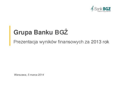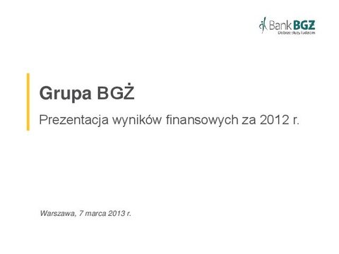 Prezentacja wyników Banku BGZ 2012